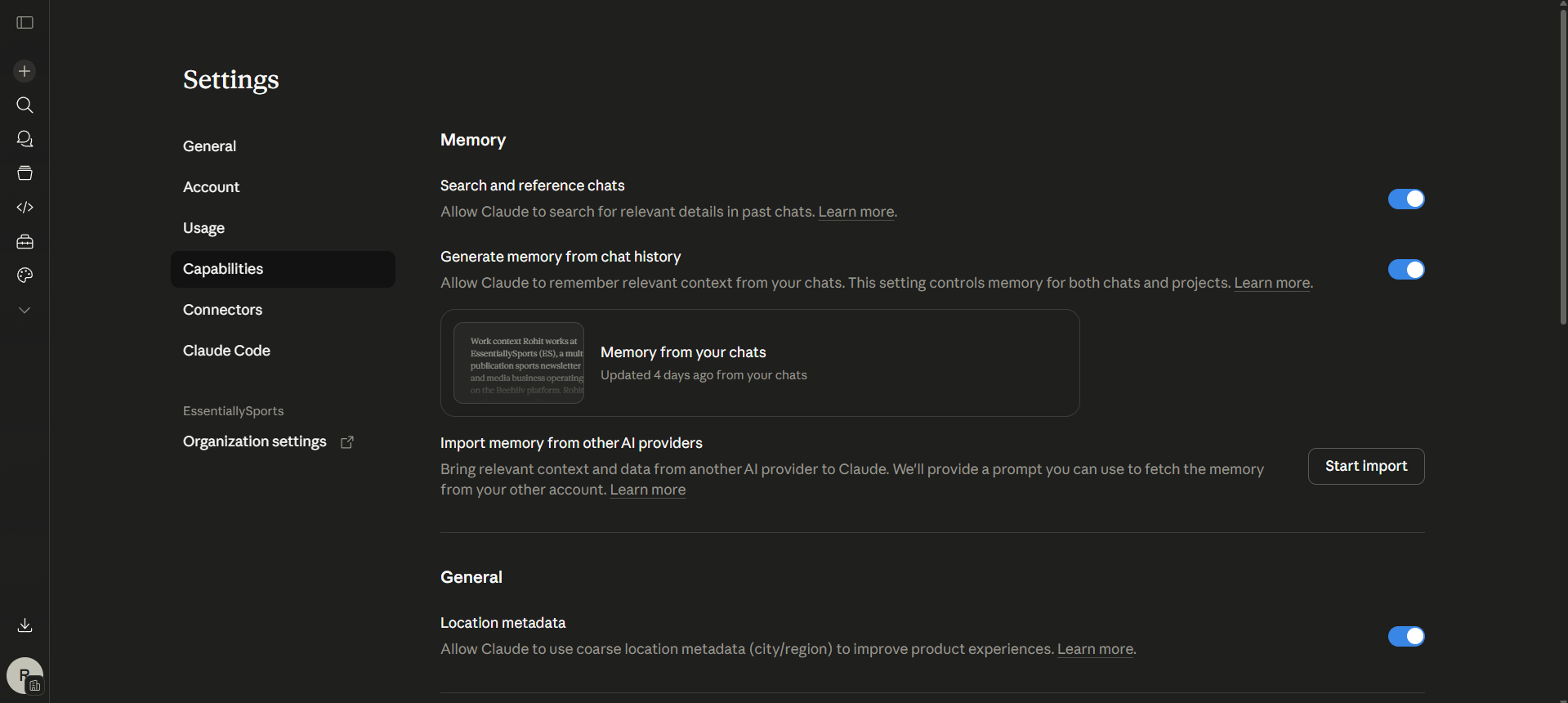 It's a slightly strange experience the first time — Claude will essentially read your own profile back to you, and some of it will be slightly off. A detail mischaracterized, a preference that didn't survive the translation cleanly. For anything missing or wrong, go to Settings > Capabilities > View and edit your memory and correct it manually.