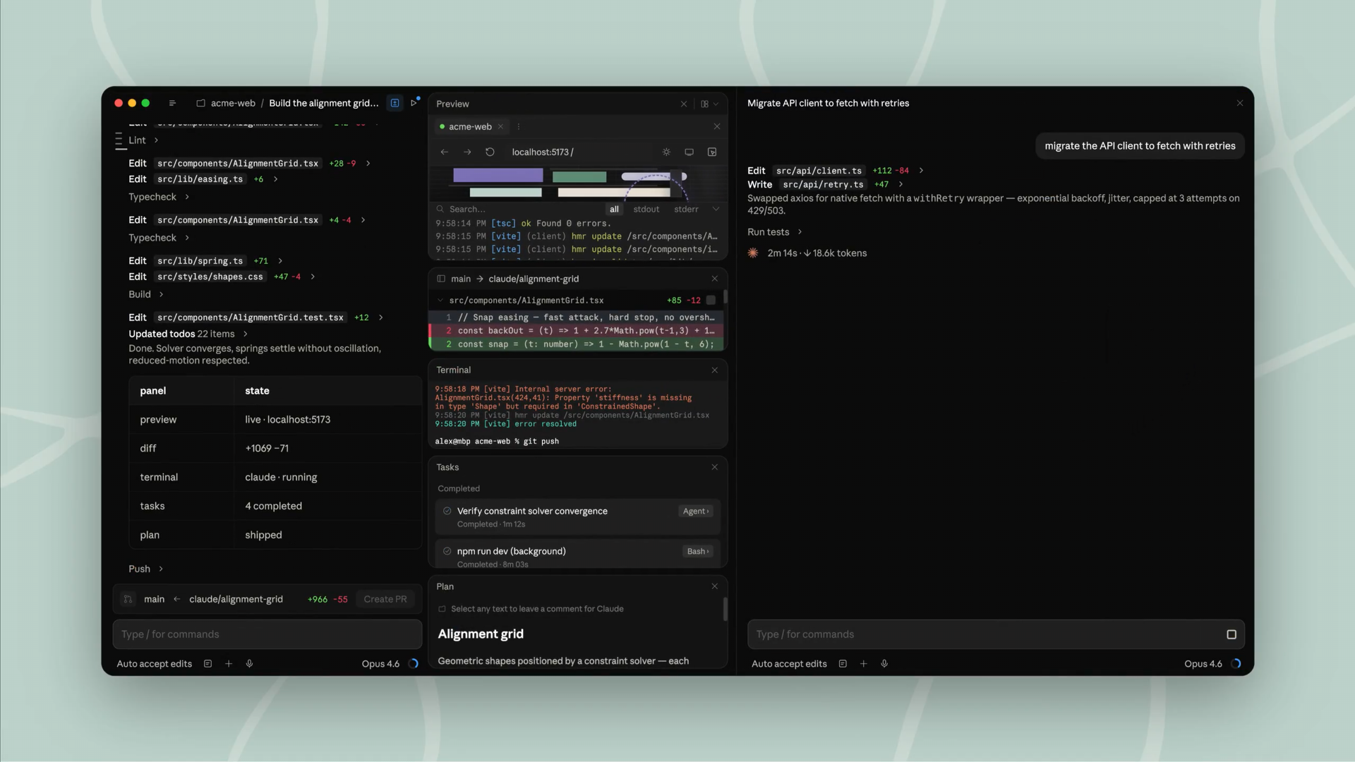 The redesign is the more obvious one. You can now open multiple Claude sessions side by side in one window, with a sidebar to switch between them. It now also has an integrated terminal, file editing, HTML and PDF preview, along with a faster diff viewer. The layout is drag-and-drop. It's a lot closer to what you'd expect from an IDE than the terminal-first experience Claude Code launched with last May.