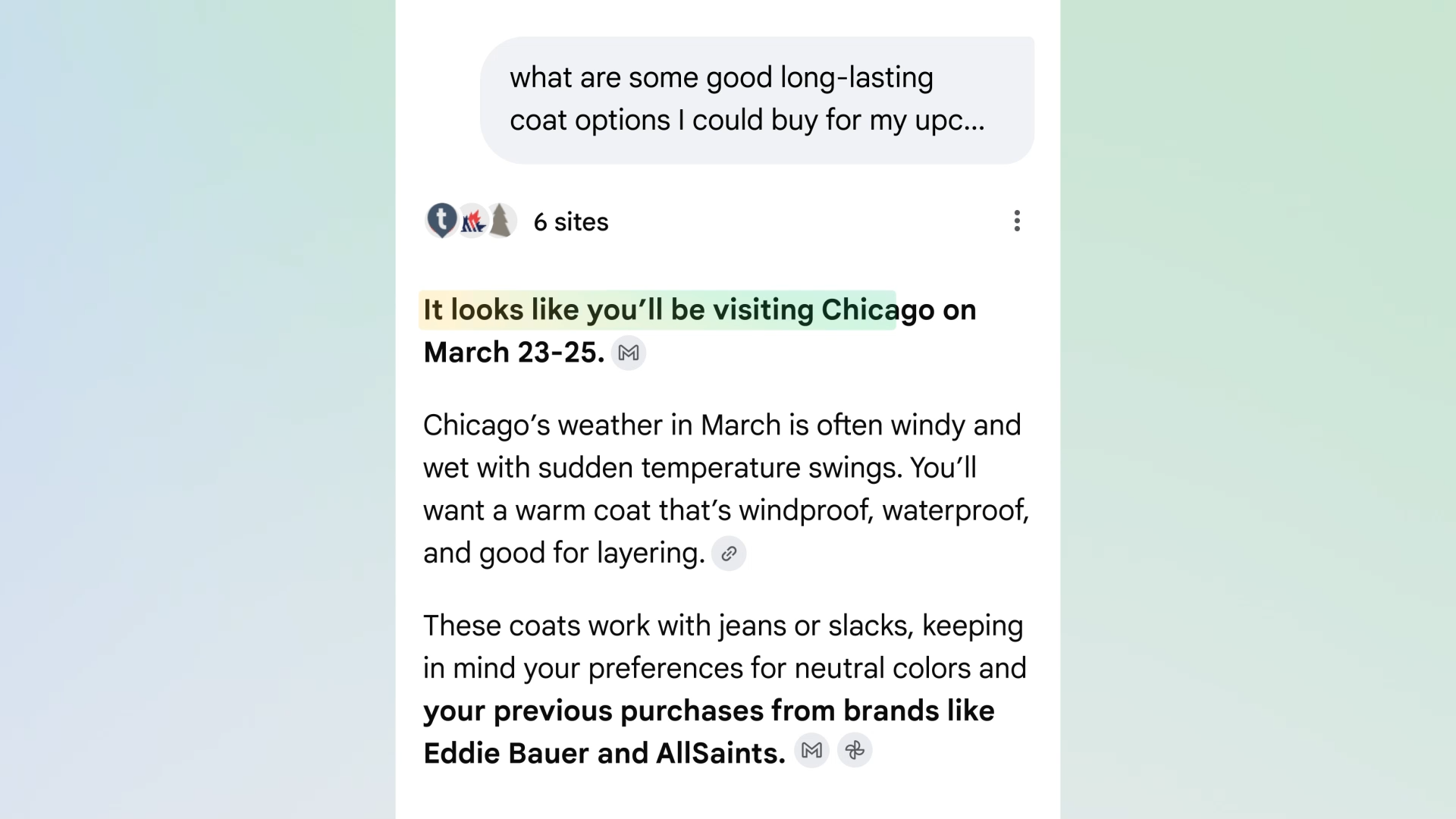 Google’s examples are meant to be immediately useful. Want to plan a family trip? AI Mode can draw on a booking confirmation in Gmail and photos of memories to create an itinerary that fits the family’s needs. Need shopping assistance? AI Mode can look at what you buy, and especially what you tend to buy.