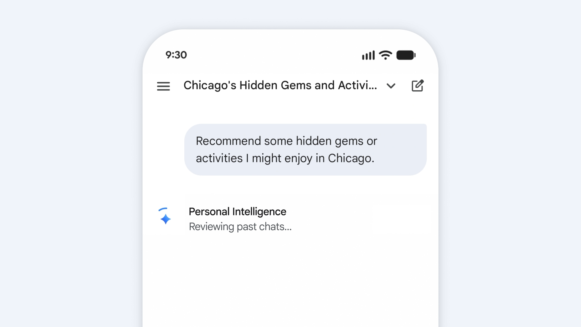 That means you do not have to put as much background into the prompt yourself. Google says Personal Intelligence can help with things like troubleshooting a device you bought without remembering the exact model, suggesting airport food based on your tastes and your gate timing, building a trip around places you are more likely to enjoy, or recommending a hobby based on patterns in what you already like.