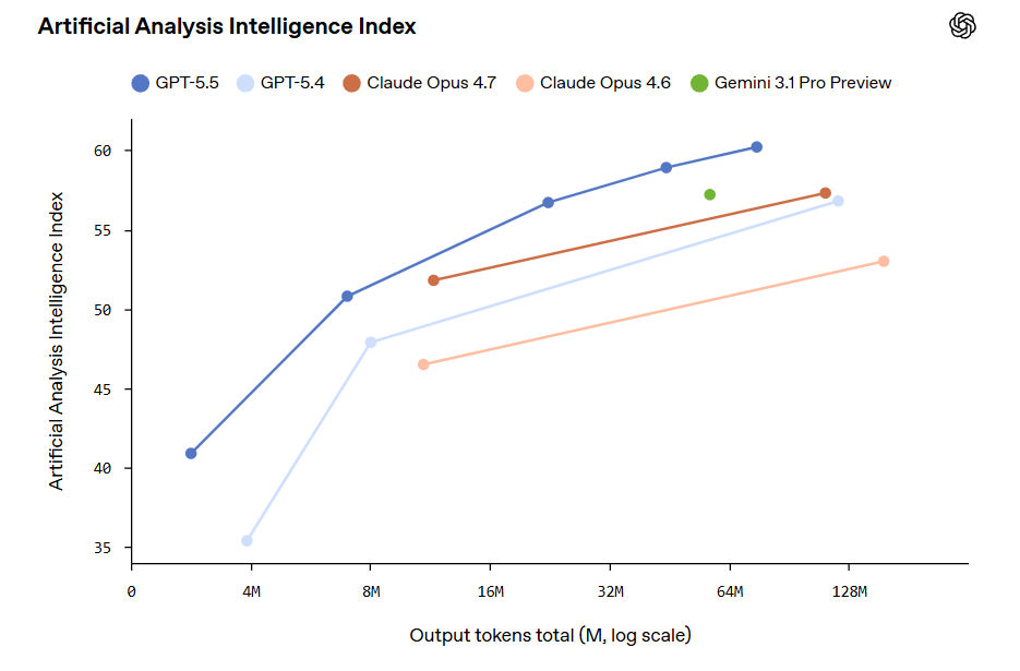 The benchmarks as usual are an upgrade over the competition and the previous models, but there's more to it than what the numbers tell. Brockman described it as “a faster, sharper thinker for fewer tokens,” and this gets to the business case better than the raw number does.